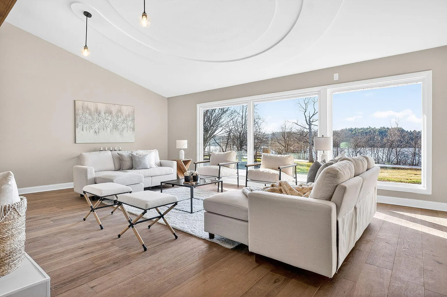 Welcome to 7321 Riverside Drive, a fully remodeled ranch set on over an acre with unobstructed views of the Scioto River. This three-bedroom, two-and-a-half-bath home offers 2,284 square feet of thoughtfully redesigned living space, blending modern luxury with a rare riverfront setting just minutes from downtown Powell and Dublin's Bridge Park.
